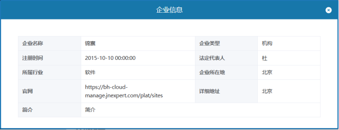 - 2.若企业认证已通过,点击查看企业信息详情,打开企业信息窗口,可查看企业的认证信息;